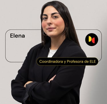 ¡Hola! Soy Elena. Estudié Filología Hispánica y siempre me ha encantado enseñar mi lengua, por eso me especialicé en Enseñanza Secundaria y en Español para Extranjeros. En mis clases siento que viajo porque conozco estudiantes de diferentes culturas y es muy enriquecedor. Soy una apasionada por la música y toco la flauta travesera.